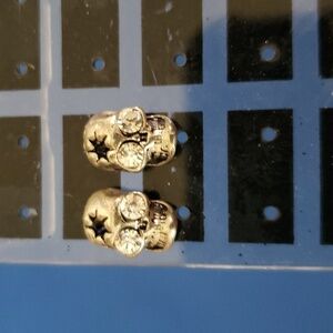 Skeleton skull earrings, rhinestone eyes, silver post back earrings, costume