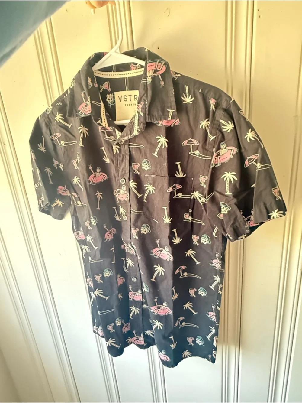 VSTR Premium black & pink vans inspired skeleton summer Hawaiian shirt Size S #hawaiian #summer