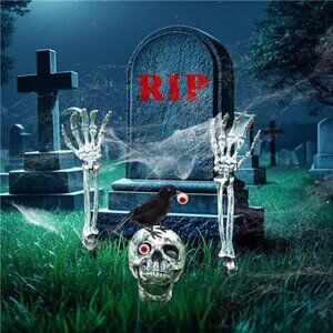 Skeletons Halloween Decorations Outdoor, Realistic Skeleton Hands and Head