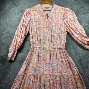 Skemo Anthropologie Maxi Dress Beaded Tiered Balloon Sleeve Swirl Med F165