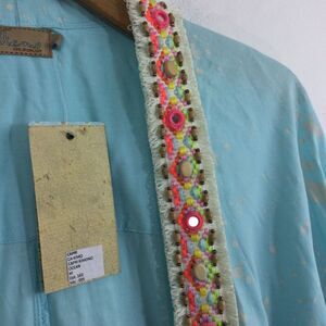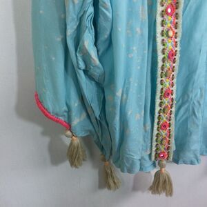 Skemo Boho Chic Cover Up Open Kimono Sleeve Embroidered Beaded Tassels M NWT