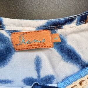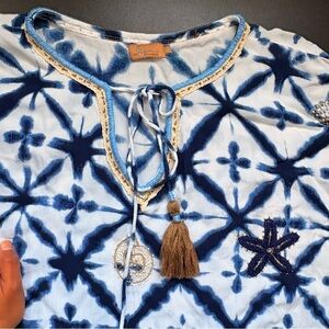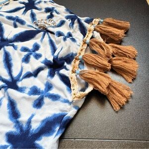 Skemo Short Kaftan tie dye blue embroidery tassels fringe tunic sea shells Large