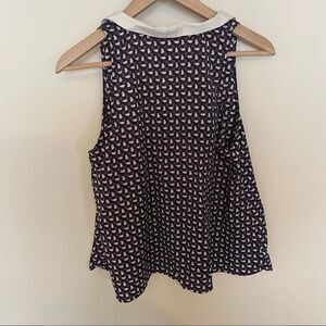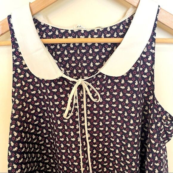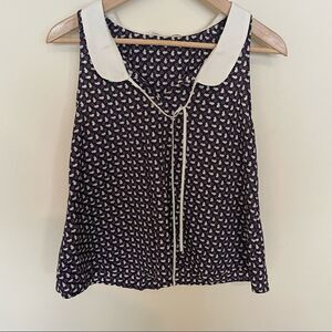 Sketchbook Anthropologie navy & white rabbit print sleeveless top Peter Pan XS