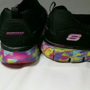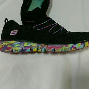 The shoes are very comfy. Been worn couple times outside. Nothing you can't wash off on the bottom. Very comfortable, cute, and supportive. Colors are purple, pink, blue, and limegreen.