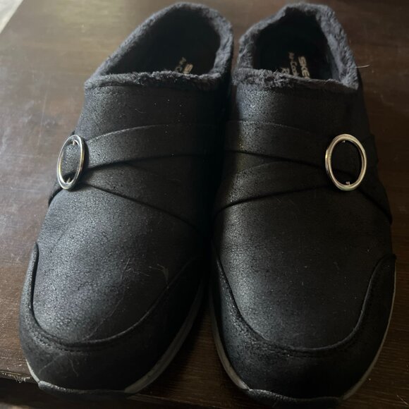 Sketchers Air-cooled Memory Foam Relaxed Fit Black Chenille Lined Clogs Size 9