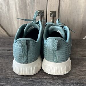 Sketchers Bobs Sneakers. Green Fabric and laces. These are a bit worn, but still usable! Size 8.5.
