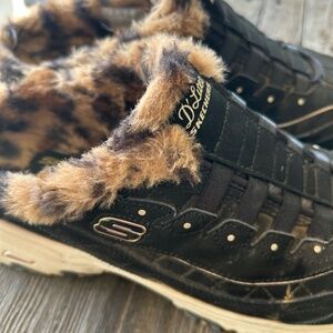 Sketchers D'Lites Plush Cloud Sneakers in black with faux fur leopard 8