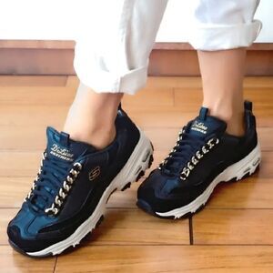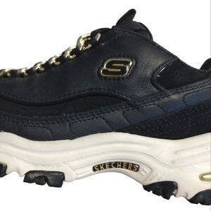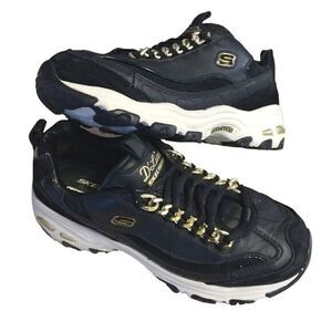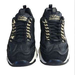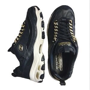 Sketchers D'Lites Premium Heritage Black Golden Idea Leather Sneakers 7.5