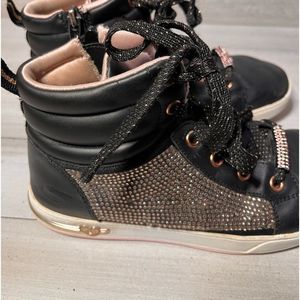 Sketchers Flashy Glitter High Top Sneakers Good Tread Gold and Black + Glitter