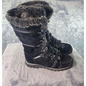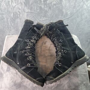 Sketchers Grand Jam Unlimited Black Suede Faux Fur Winter Boots Size 8