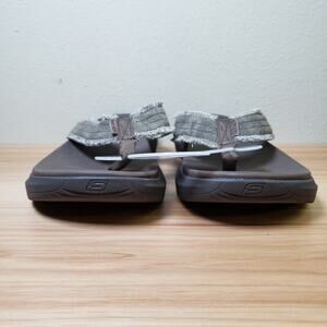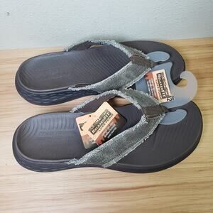 Sketchers Men's 12 Relaxed Fit Luxe Foam Flip Flop Sandals Distressed Fabric NWT