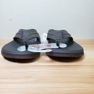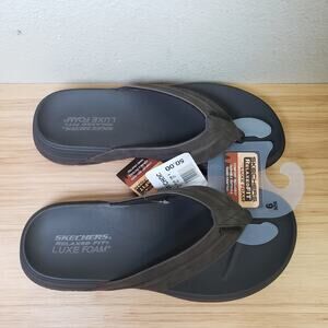 Sketchers Men's 9 Relaxed Fit Luxe Foam Flip Flop Sandals Brown Strap Comfort NWT