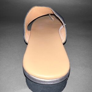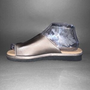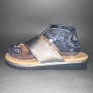 - Metallic Gunmetal Sandals with enclosed toe and tan inserts
