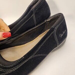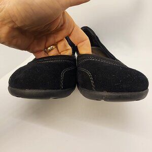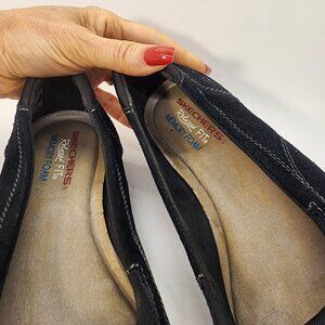 Black Suede "ballet" slipper shoes, relax fit, memory foam insole. Classic, delicate & adorable. For every style, dress it up or be completely casual. Comfortable luxury you expect from Sketchers.