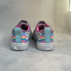 Let your child step into a world of magic with these sparkly unicorn sneakers. Featuring a delightful purple and pink design, these shoes are perfect for little dreamers. Comfortable and fun, they are great for everyday wear.