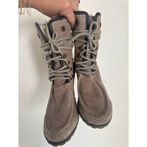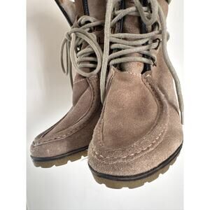 Sketchers Vintage Suede Lace-Up Shearling Wedge Boots - Brown Cream, US 8