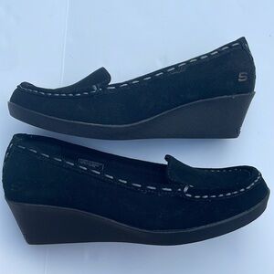 Sketchers Women’s Black Flattery Loafers with Wedge Gray Stitching Y2K 6.5