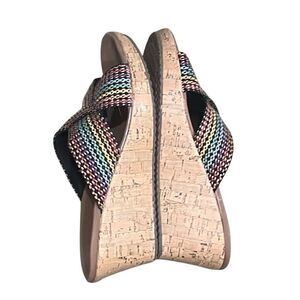 Sketchers Women’s 7 Black and Blue Cross-Strap Sandals with Textured Design