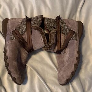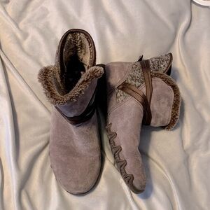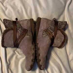 Sketchers faux fur lined ankle suede leather bootie mink brown 10 tweed trim
