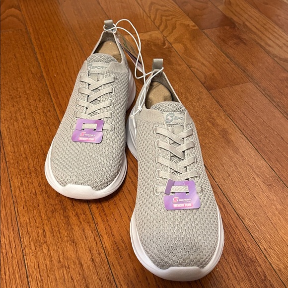 These Sketchers are vegan sport in gray color with memory foam. NWT
