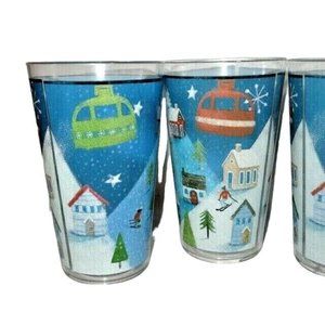 Ski Lodge Acrylic Tumbler 4-Pc Snow Skiing Mountains Trees 19-oz Each Gift NEW