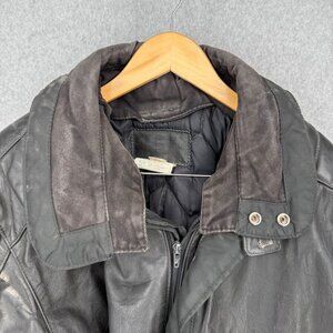 Pre-owned vintage condition with signs of wear. Jacket is very dust and needs to be cleaned. Some overall wear on leather fabric. Zippers work. VINTAGE ITEM, PLEASE CHECK MEASUREMENTS FOR FIT. See photos!