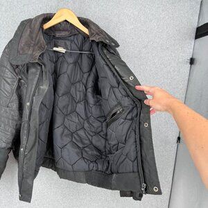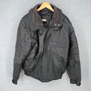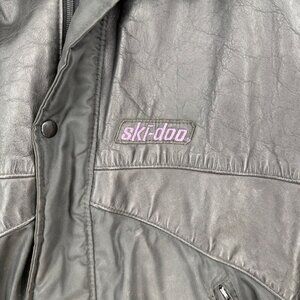Ski-Doo Mens Vintage Leather Bomber Jacket Size 40/M/L Black Removable Collar