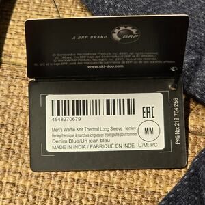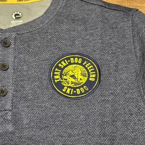 Ski-Doo Men's Waffle Knit Thermal Long Sleeve Henley Denim Blue NWT