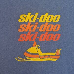 multicolored skidoo logo and snowmobile silhouette on teepublic/BellaCanvas tshirt