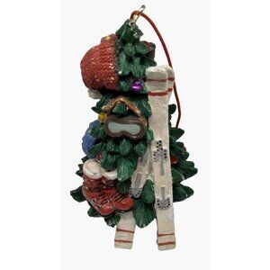 Ski Season Christmas Tree Ornament is perfect for winter sports enthusiasts. Features skis, poles, boots, goggles, and mittens as ornaments.
