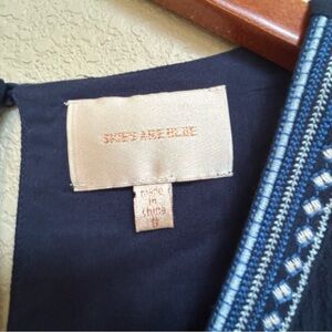 Skies Are Blue Anthropologie Navy Embroidered Sleeveless Summer Dress Size Small