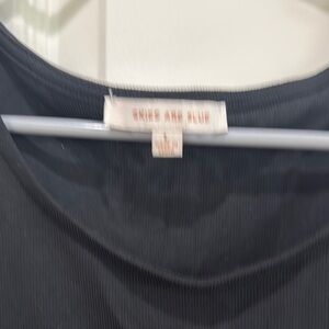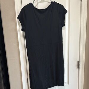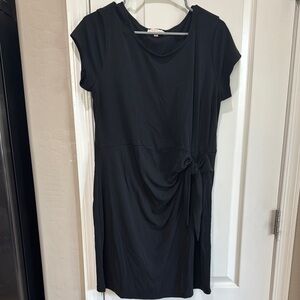 This elegant black mini dress by Skies Are Blue showcases a chic ruched design and a classic crew neckline. Ideal for both casual and work settings, its sheath silhouette and short sleeves provide a stylish and comfortable fit.