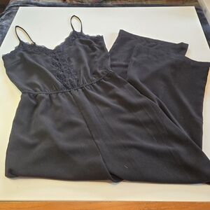 Skies Are Blue Black Size Med Wide Leg Pantsuit With Lace Details