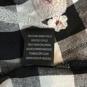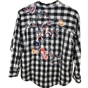 Skies Are Blue Black and White Check Embroidered Blouse Size Large