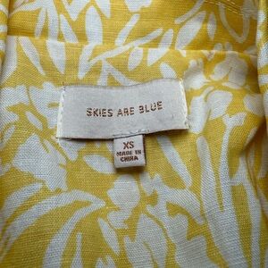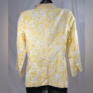 Skies Are Blue Blazer Women XS Yellow White Floral Lightweight Summer Jacket