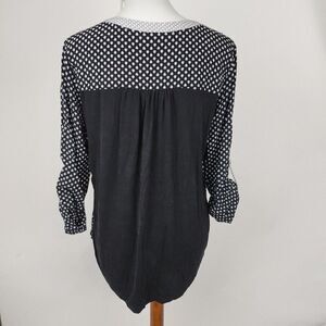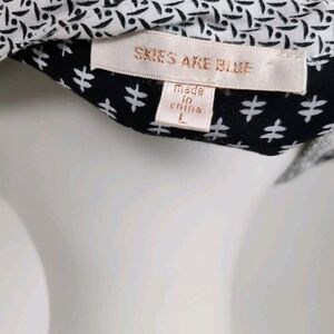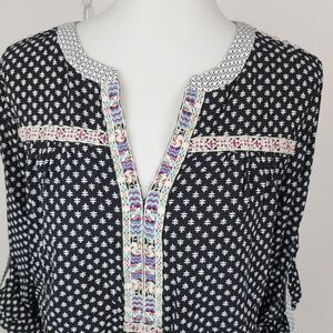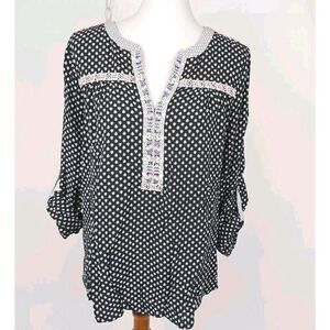 Skies Are Blue Boho Embroidered V-Neck 3/4 Sleeve Blouse Black White - Size L