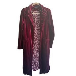 Skies Are Blue Burgundy Wine Velvet Long Blazer Open Jacket Medium Soft Stretchy