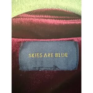 Keywords: Skies Are Blue blazer, velvet jacket, burgundy coat, holiday outfit, long velvet blazer, women’s medium jacket, stretch velvet, fall fashion, spandex blend, boho chic velvet blazer.