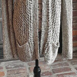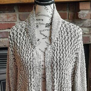 Black and off white knit nubby cardigan. Gently Loved if at all. Approx Measurements: Length 32" 24" Pit to Pit Back of cardigan and Arm length from shoulder seam 28" to cuff. Pet Friendly Home