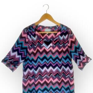 Skies Are Blue Chevron Shirt Dress L Multi Pink Purple Teal Black Zig Zag Print