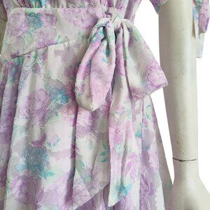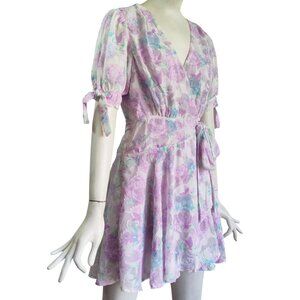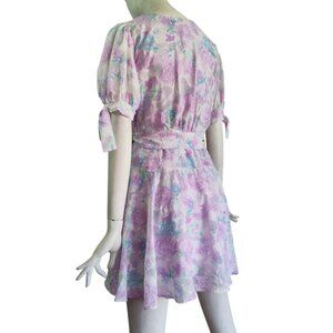 Skies Are Blue Cleo Coquette Puffy Tie Sleeve Floral Jacquard Wrap Dress M NWT
