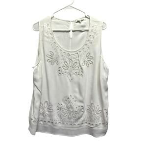 Skies Are Blue Curvy Woman White Eyelet Tank Top Blouse Size 2X Coquette