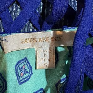 Skies Are Blue Dress Women S Green Geo Print Criss Cross Boho Resortcore Y2K