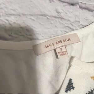 Skies Are Blue Embroidered Peasant Top Bohemian Blouse Short Sleeve S