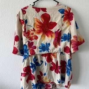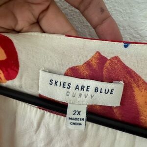 Skies Are Blue Floral Blouse with Red and Orange Accents