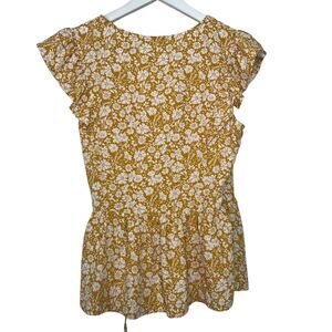 Skies Are Blue Floral Wrap Ruffle Peplum Blouse Top Womens Medium Yellow/White