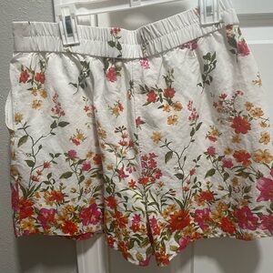 Skies Are Blue High Waist Floral Shorts - White and Multicolor