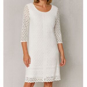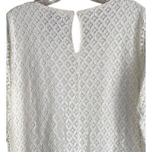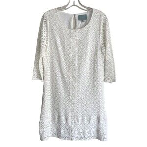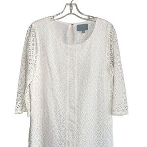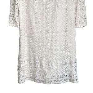 Skies Are Blue Crochet Dress Slip Embroidered Ivory Sheer 3/4 sleeves M