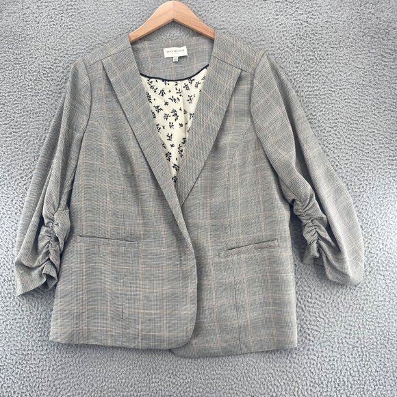 Skies Are Blue Jacket Womens 2X Plus Curvy Gray Plaid Ruched 3/4 Sleeve Blazer