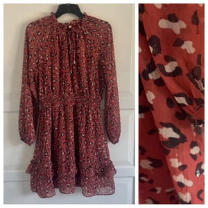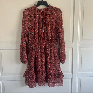 Skies Are Blue Leopard print ruffle neck Mini dress 30916